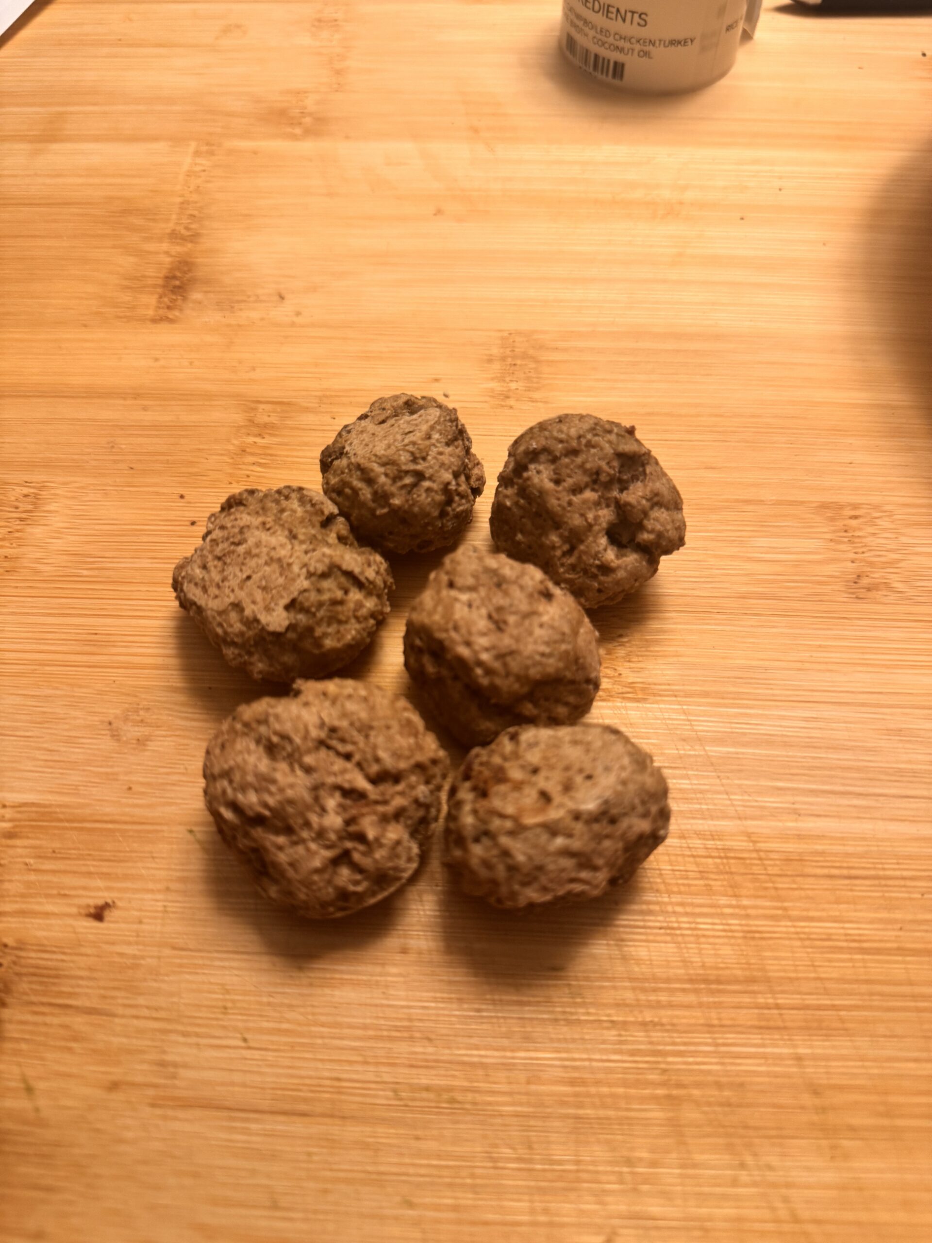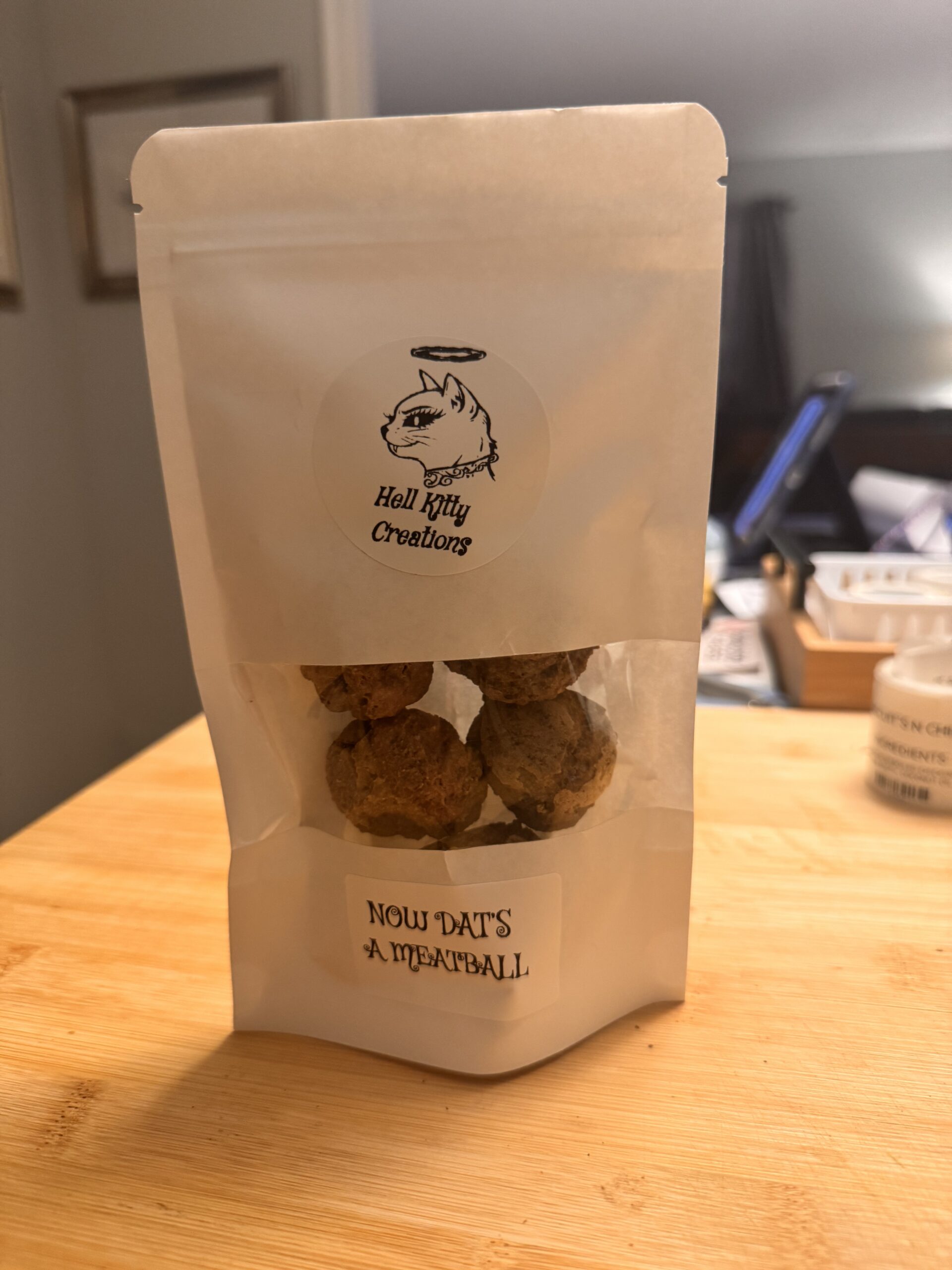 REMINISCENT OF GRANDMAS HOME COOKED SUNDAY MEALS IN DOG AND CAT SIZE BITES. THESE WHOLESOME MEAT SPHERES OF JOY WILL MAKE ANY PET FORGET EVERY TIME YOU CLIPPED THEIR NAILS, STEPPED ON THEIR TAIL, OR STARTED THE VACUUM. DAT’S A MEATBALL GLUTEN FREE TREATS ARE MADE FROM SIMPLE INGREDIENTS LIKE LEAN GROUND TURKEY, ITALIAN SEASONING,AND CAGE FREE EGGS.